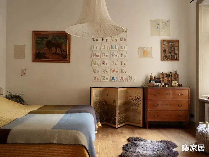 在孩子的房间,也使用了各种各样的米色和装饰材料,营造的vintage质感不会老气压抑,更显气质不俗。门框上的秋千,墙上的字母卡片,这种当代的生活状态加入复古氛围感的空间,真是太令人感到惊喜了。